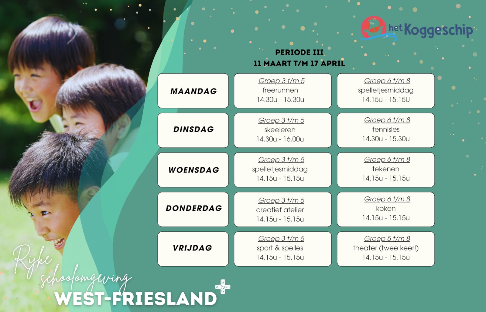 In de komende periode vallen een aantal studiedagen en Pasen, hierdoor vervallen een aantal RSO middagen.